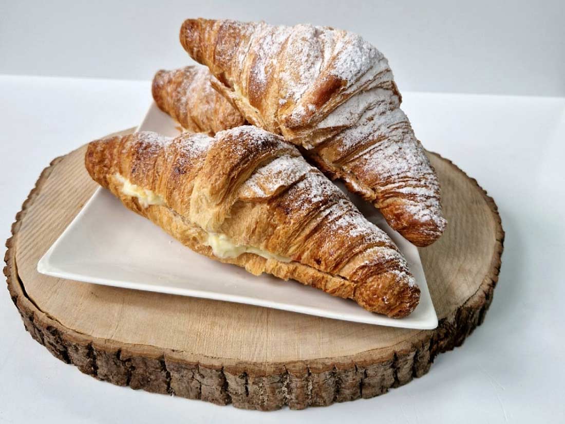 Rogal francuski z kremem budyniowym oraz nadzieniem - żelką o smaku malinowym przyprószony cukrem pudrem. Dostępny od wtorku do soboty.