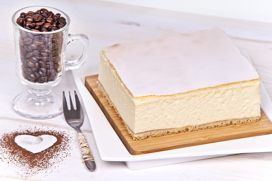 Spód ciasta biszkoptowo - tłuszczowego, masa sernikowa na bazie masła i chudego wiejskiego twarogu z dodatkiem aromatu waniliowego.