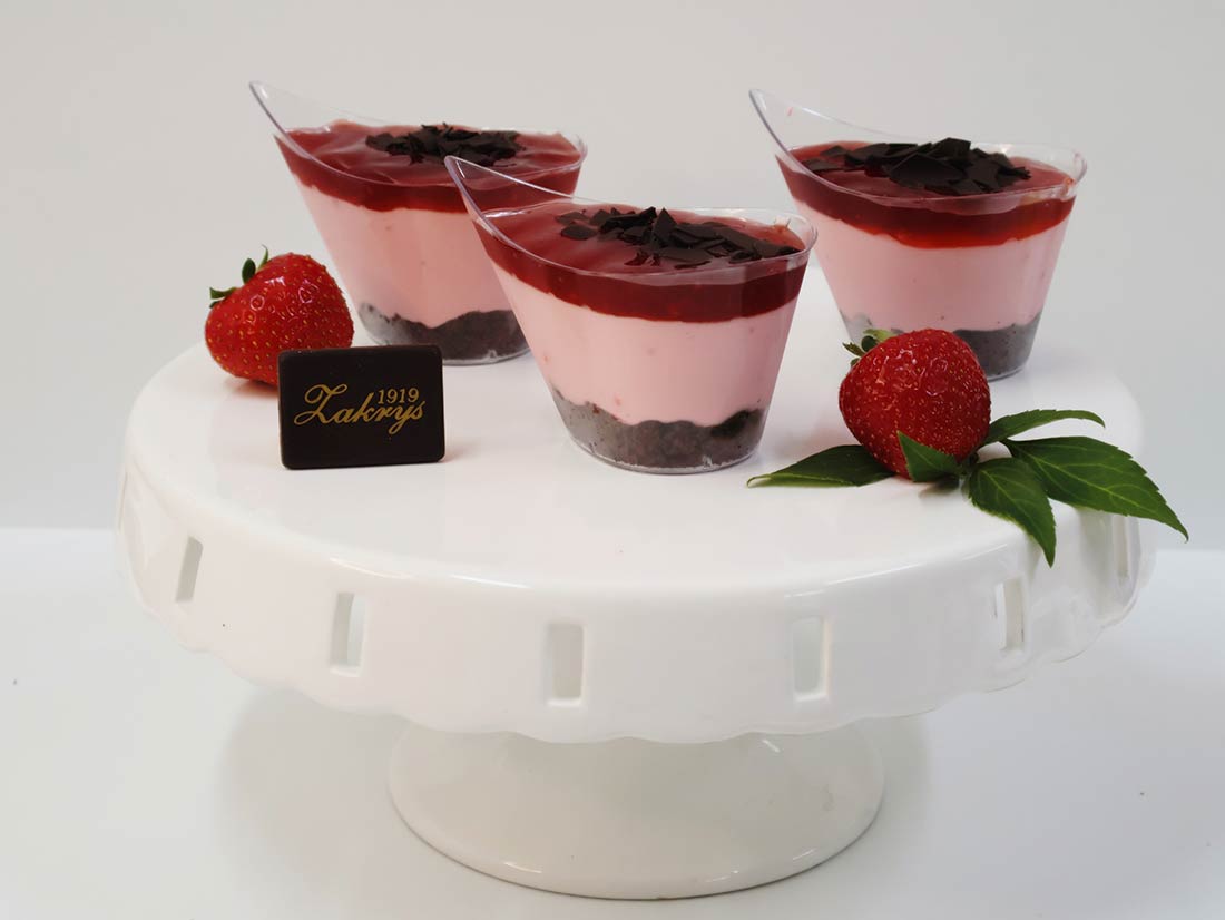 delikatny mus na bazie bitej śmietanki o smaku truskawkowym.