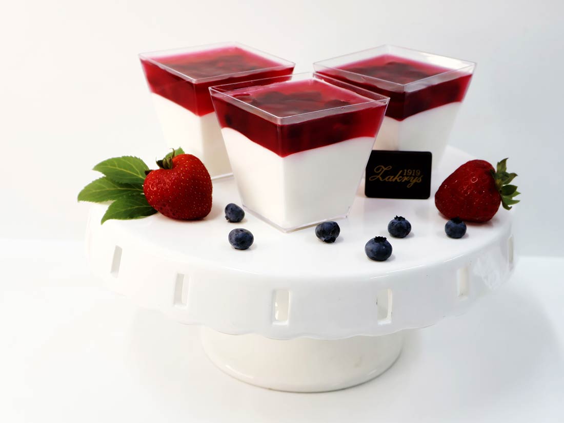 puszysta masa twarogowa z dodatkiem śmietanki w towarzystwie owocu sezonowego oraz galaretki truskawkowej.