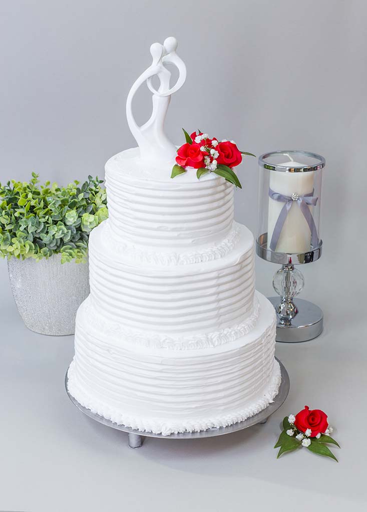- dekoracja z kwiatów cukrowych + obrączki: złote, srebrne, białe;