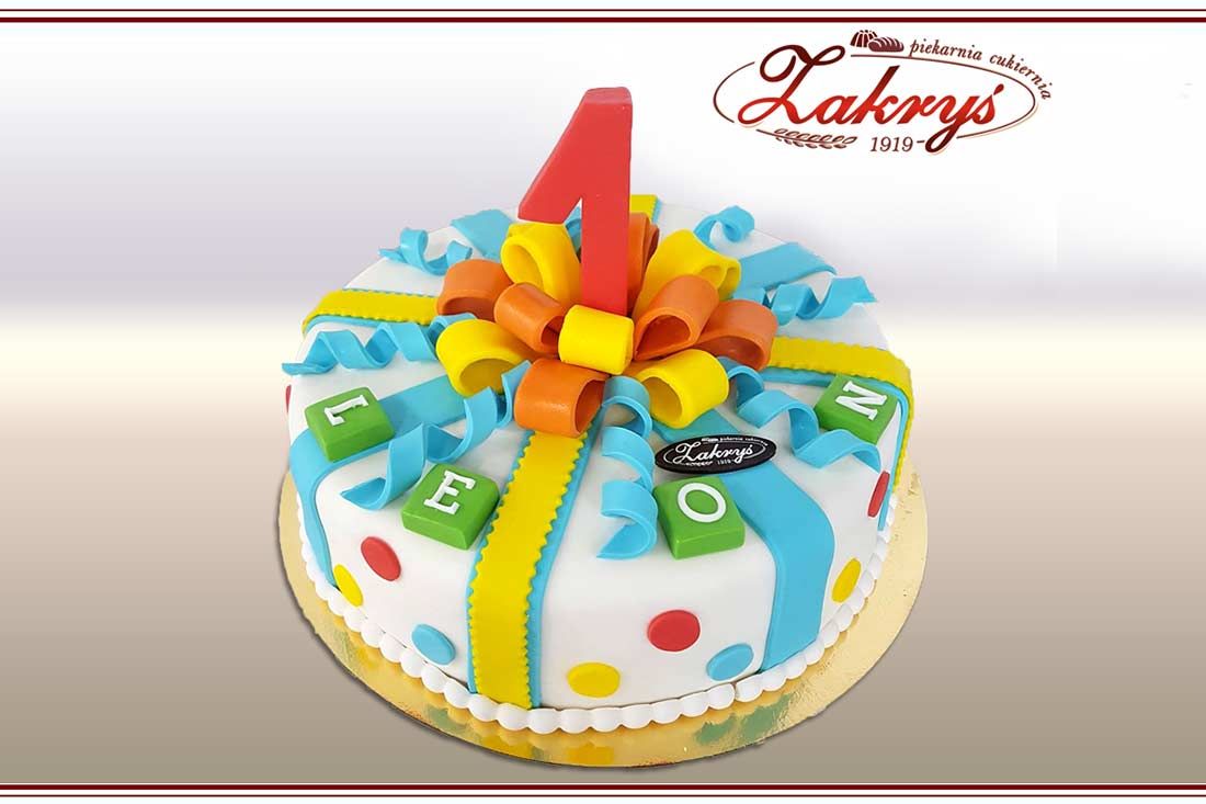 - średni, średnica 22 cm (15-18 porcji) – mniejsza wstążka, mniej dekoracji, literki nie na kostkach