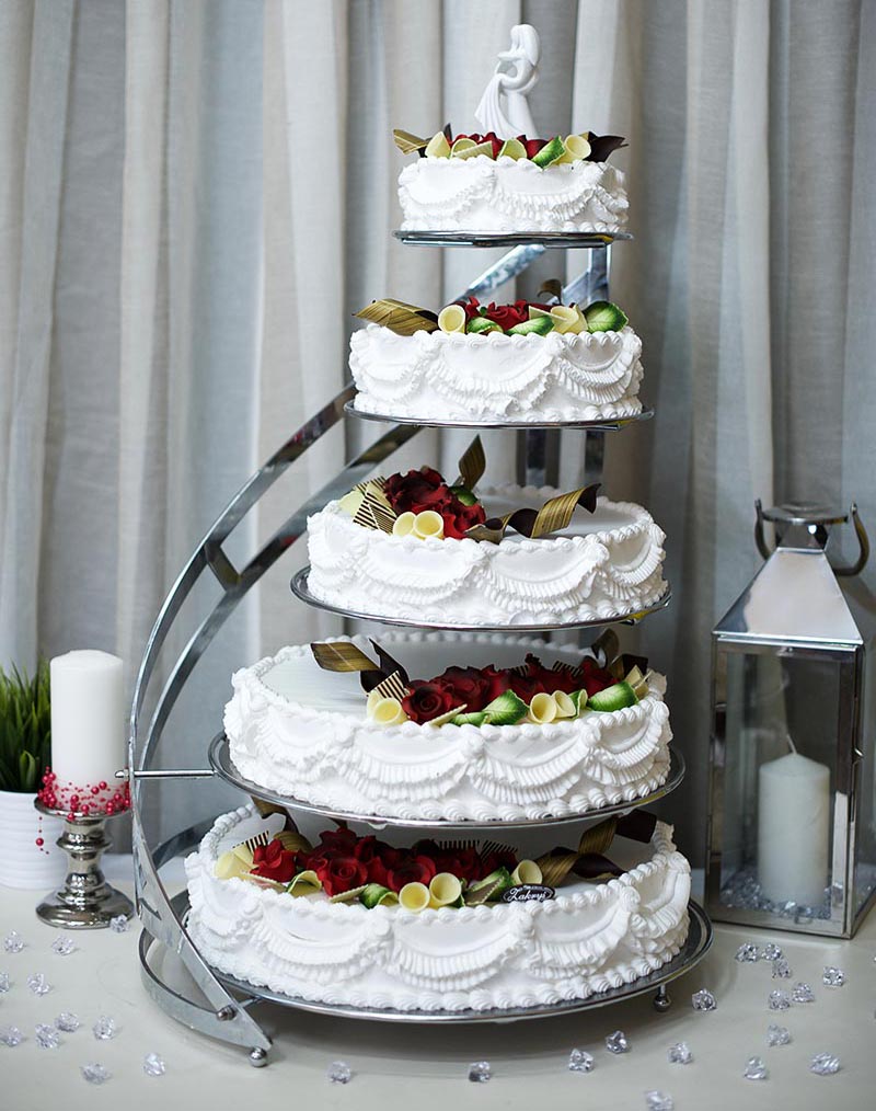Możliwość udekorowania stelaża i tortu żywymi kwiatami za dodatkową opłatą.