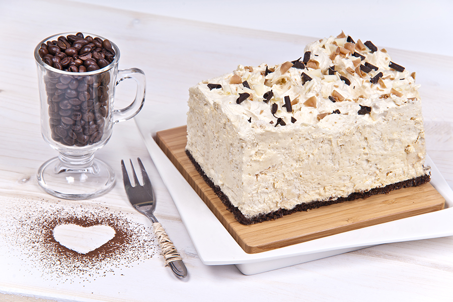 Ciasto czekoladowe nasączone białym winem CIN-CIN Bioanco przykryte kremem na bazie masła, wanilii oraz alkoholu, połączone z bezą