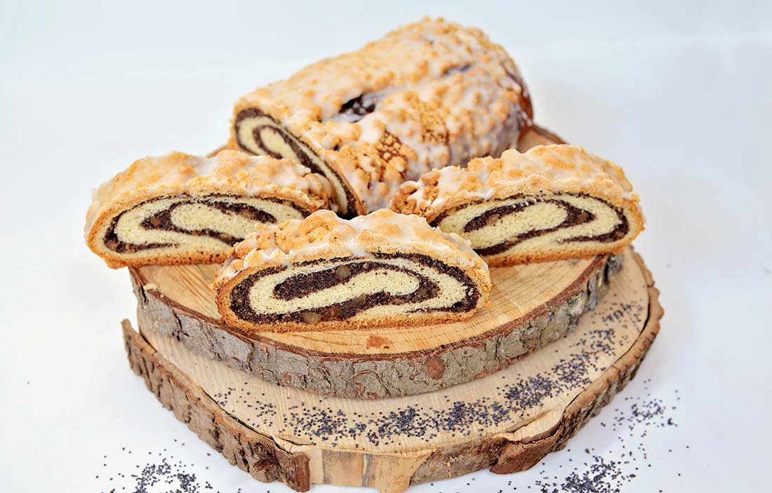 Pieczone ciasto drożdżowe oparte na bazie mleka i masła, przesmarowane smaczną masą makową, zwinięte w roladę.