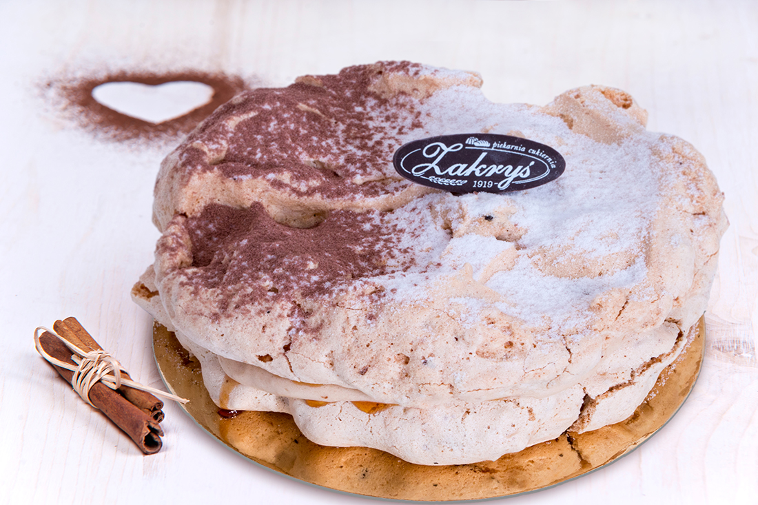 Wykwintne bezy z daktylami i orzechami włoskimi, przełożone kremem na bazie śmietany i serka mascarpone z nutą orzecha laskowego.
