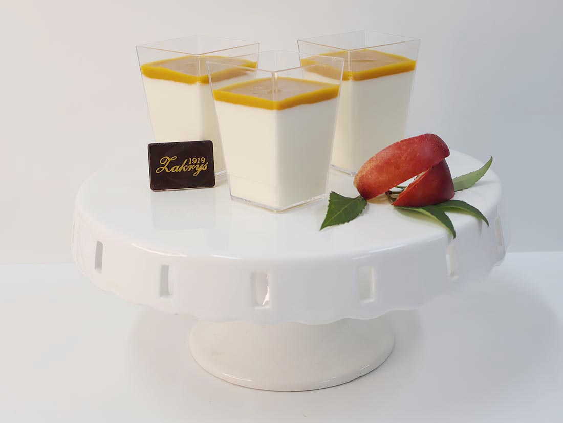 tradycyjny włoski deser na bazie śmietanki w towarzystwie pulpy z mango.